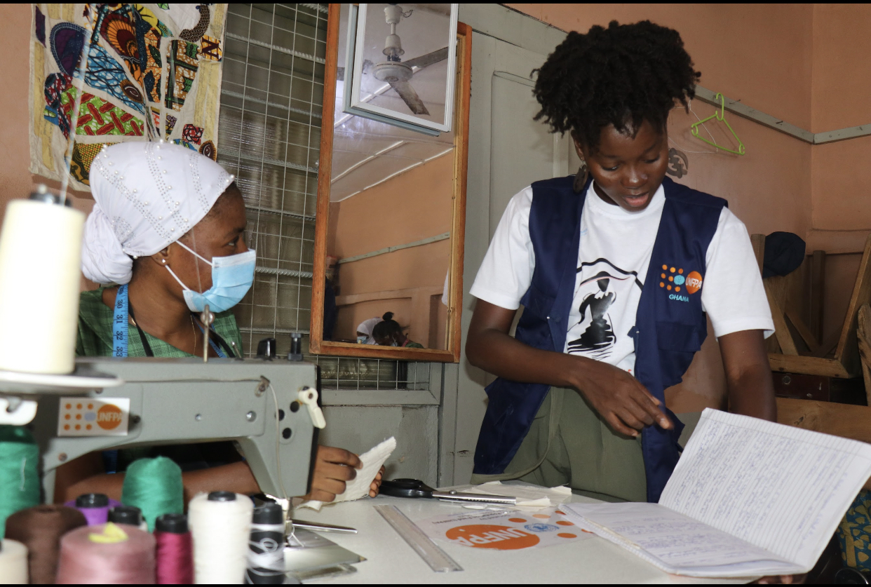 At the United Nations Population Fund (UNFPA), Sandra led the ‘Fashion Expressions: The Stories She Wears’ initiative, a collaborative project with the Prada Group aimed at promoting equality and socio-economic well-being. Sandra explains, “The objective of the whole project was to target women in vulnerable circumstances in Ghana and Kenya, leveraging fashion as a tool to promote equality and also their socio-economic well-being.” The initiative went beyond mere skills building, to build agency among participants, enabling them to not only start their own businesses but also make meaningful contributions to their communities. Through a series of comprehensive programs and mentorship opportunities, participants were equipped with the necessary tools, skill set, and national accreditation to embark on their entrepreneurial journeys and secure long-term employment opportunities.